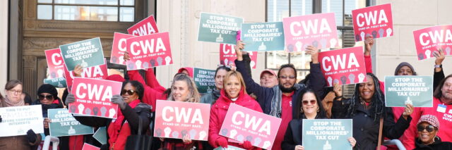 Late last week, Assemblyman Thomas P. Giblin introduced Bill A5878, which would extend the surtax for two years. CWA members and allies across the state will continue to demand that legislators take action as working people cannot afford to subsidize a mass tax break for the most profitable corporations.