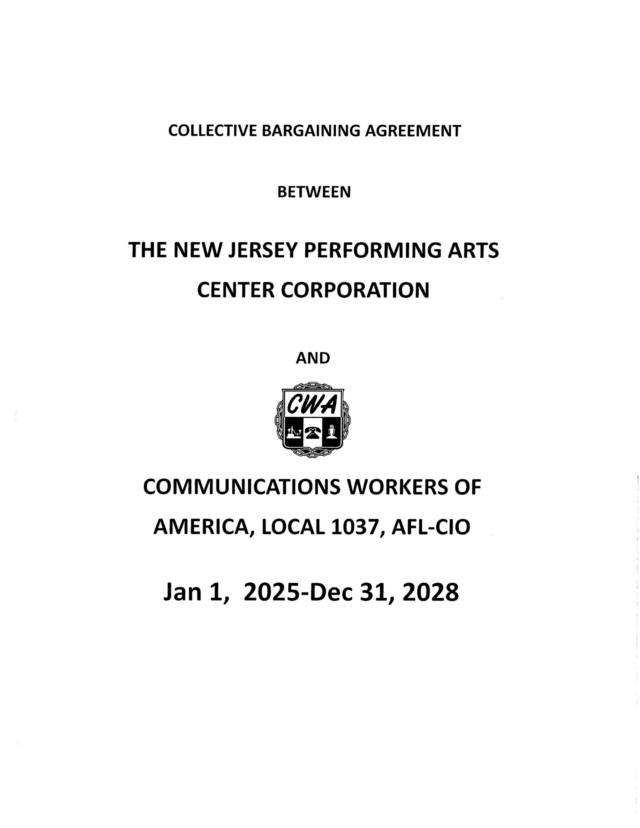 Collective Bargaining Agreement Between CWA Local 1037 and NJPAC
